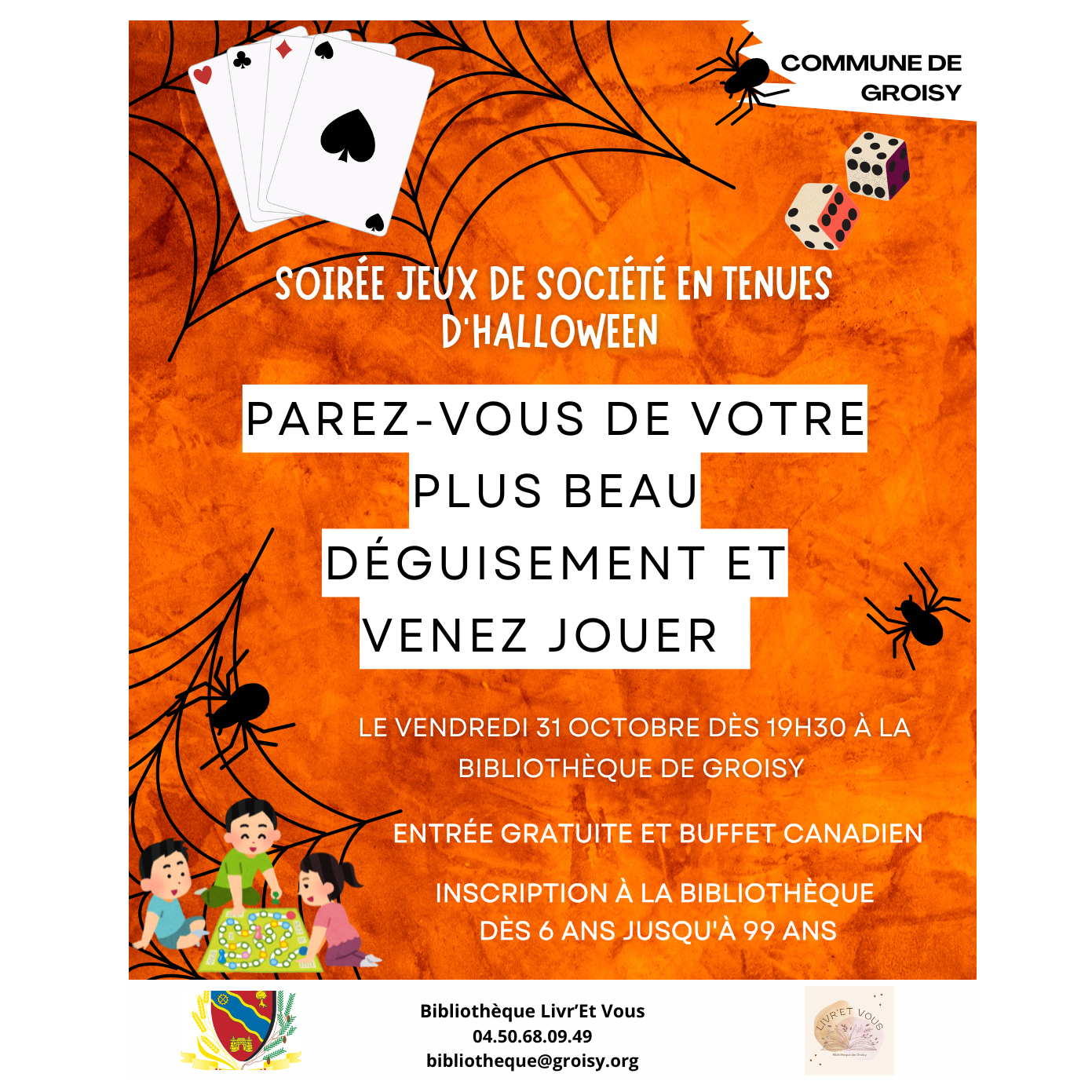 Venez frissonner de plaisir à Livr'et Vous - Bibliothèque Groisy autour d’un buffet canadien et de jeux de société📅 Vendredi 31 octobre