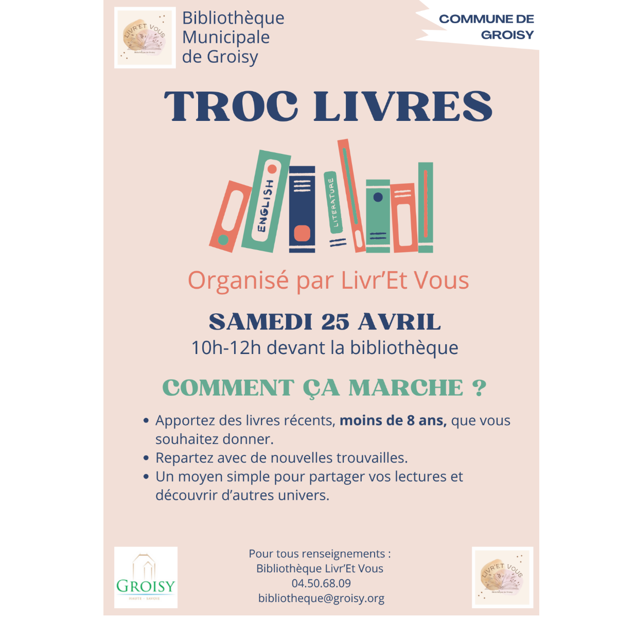 Renseignements : 04 50 68 0949ou bibliotheque@groisy.org
