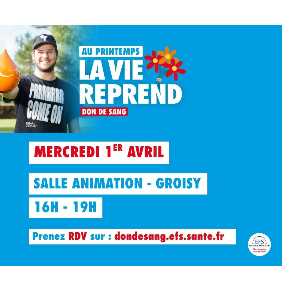 Possibilité de prendre RDV sur : https://dondesang.efs.sante.fr/trouver-une-collecte/155379/tous