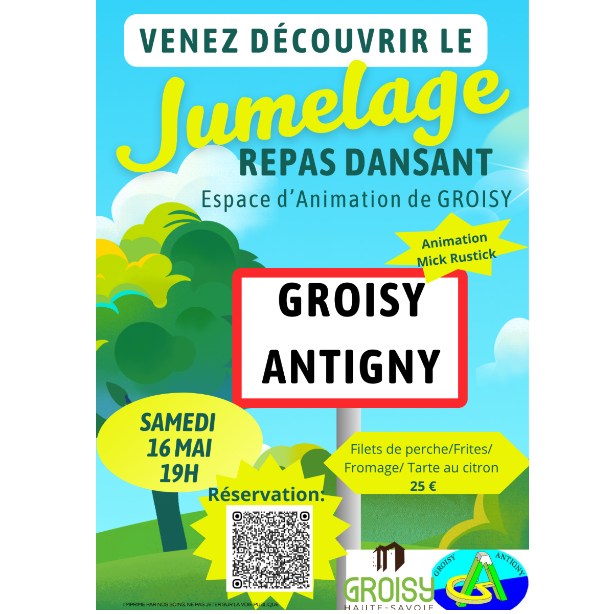 Le comité de jumelage de Groisy Antigny vous invite à une soirée conviviale et festive, dans le prolongement de l’accueil des Antignolais durant le week-end de l’Ascension.📅 Samedi 16 mai à 18h30