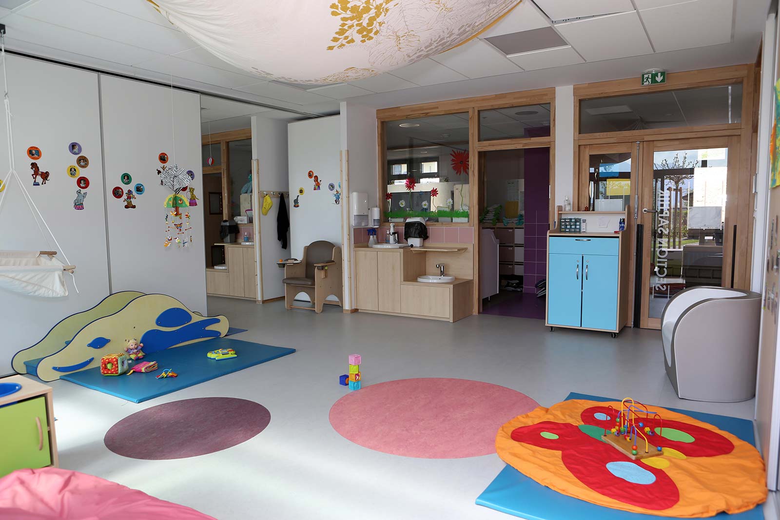 Trois sections distinctes (les petits, moyens et grands) permettent de répondre au mieux aux besoins des enfants, accompagnés d’une équipe de professionnels.